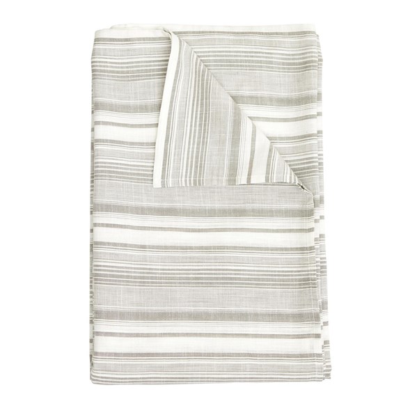 Sweet Bouclé är ett mjukt randig duk i beige och offwhite färgtoner och med en härlig struktur. Duka vackert med porslin ton i ton.