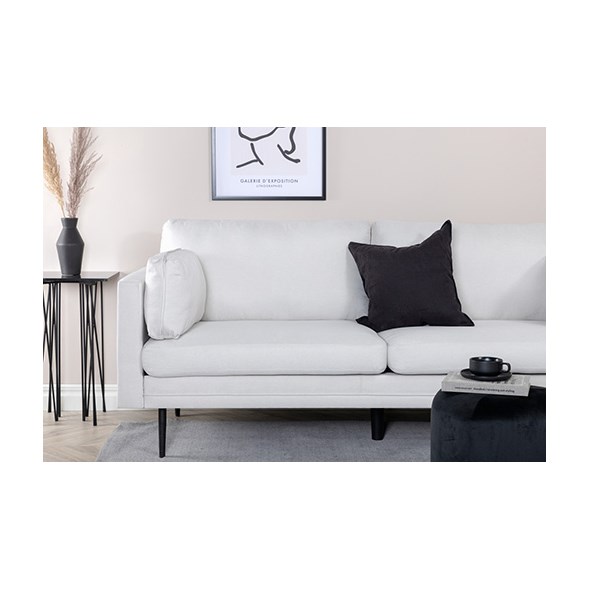 Bekväm ljusbeige soffa i serien Boom som inger en otroligt värmande och inbjudande känsla till ditt hem och kommer garanterat förlänga soffstunderna. Designen är tidlös med raka nordiska former och smala metallben i svart som ger en praktisk höjd till soffan. Soffans tidlösa uttryck gör den lätt att matcha med övrig inredning.