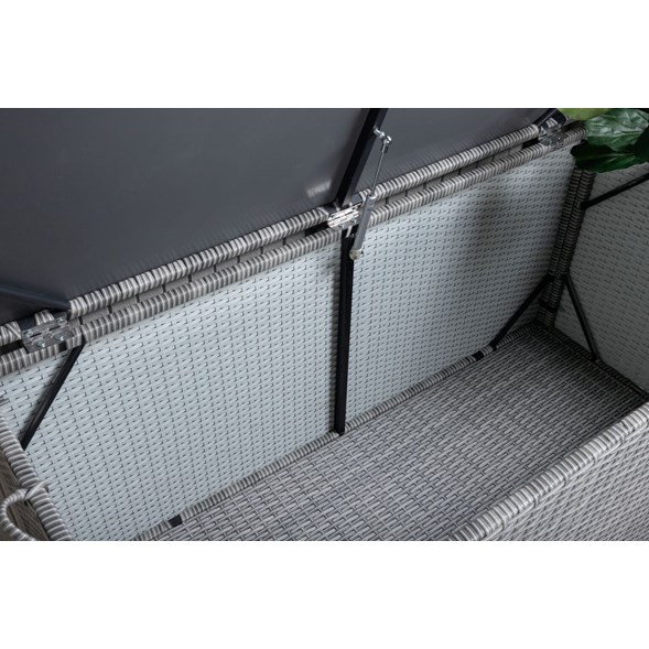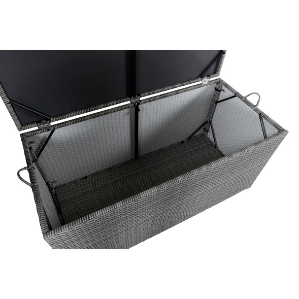 Förvara dina dynor till utemöblerna på ett snyggt och praktiskt sätt med hjälp av London dynbox i en snygg grå färg. Med en rymlig dynbox kan du förlänga livslängden på dynorna – en smart förvaringslösning som funkar lika bra i förtältet som på altanen eller balkongen.