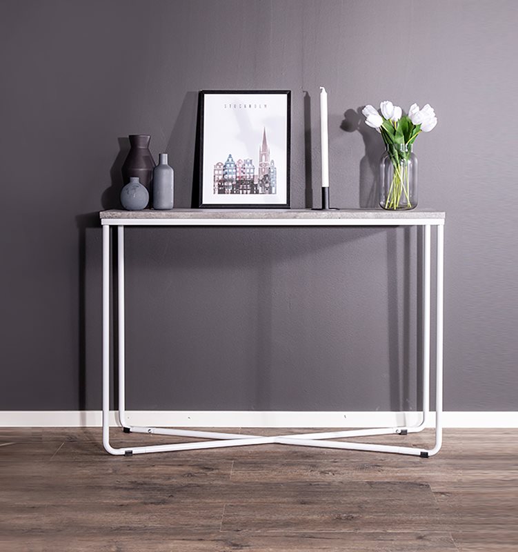 Palace, en hemtrevlig och iögonfallande inredningsdetalj i all sin enkelhet! Här får du ett vackert sidobord med en skiva i spräcklig betong-look och ben i vit metall.