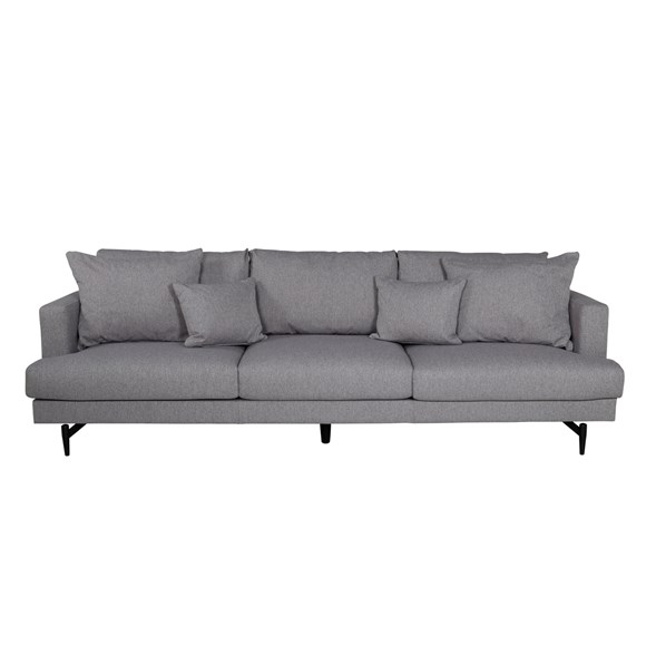 En grå soffdröm som utstrålar lyx och stil. Soffan Sofia kombinerar elegant formspråk, rak nordisk design med charmigt intryck som skapar ett inbjudande blickfång. De smala benen i metall ger den här 3-sitssoffan ett smart och dekorativt lyft som möjliggör enkel dammsugning undertill.