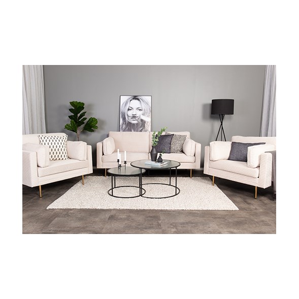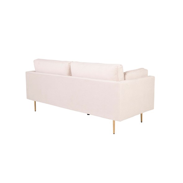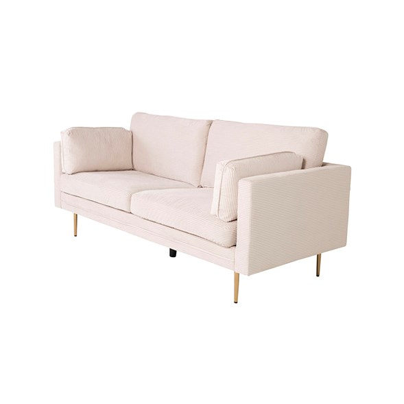 Soffan Boom har både smakfull design och hög sittkomfort. Den här stilfulla 3-sits soffan med mjuk manchesterklädsel i beige och cylinderformade metallben har ett tidlöst uttryck som gör den lätt att matcha men övrig inredning i ditt hem.