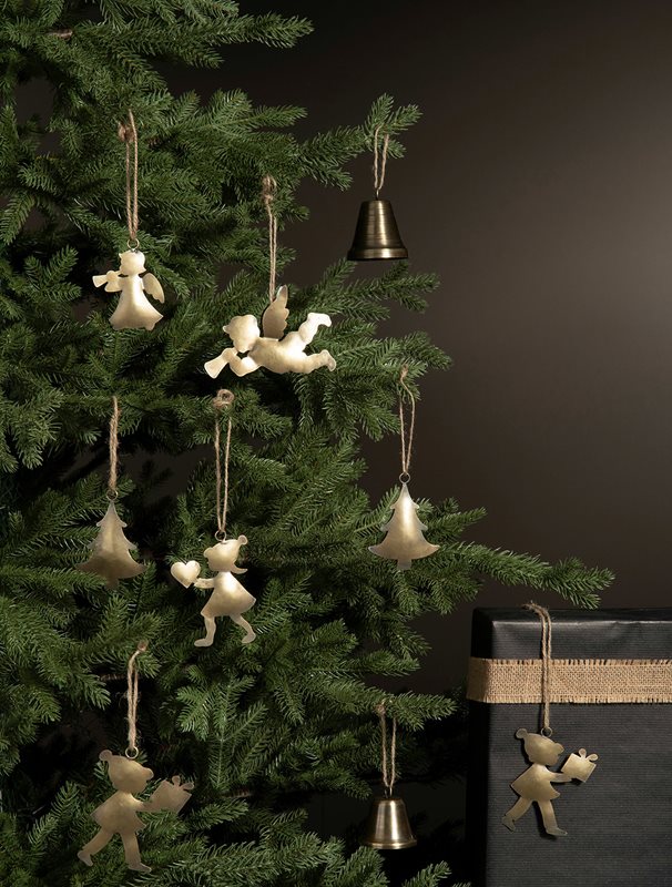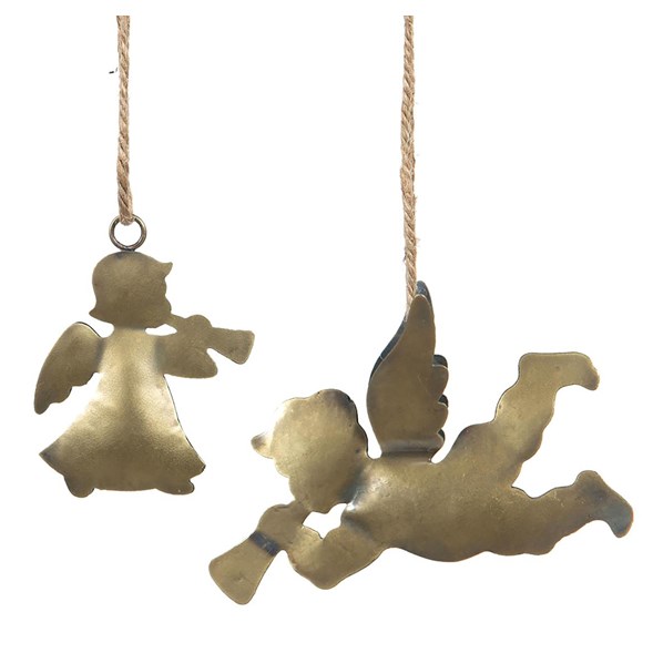 Vackra julgranshängen i mässingfärgad metall. Änglarna säljs i 2-pack med en ståendes och en liggandes ängel.