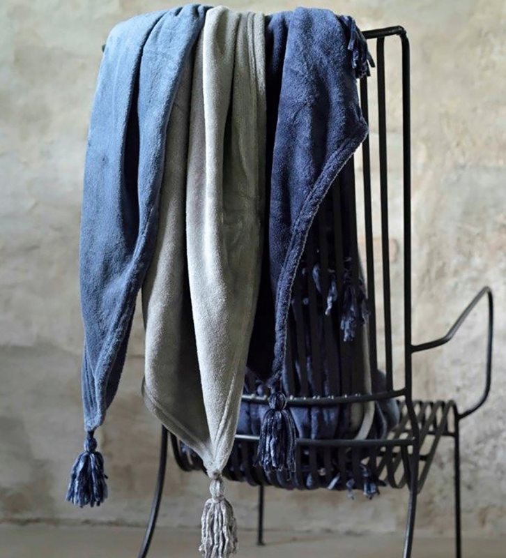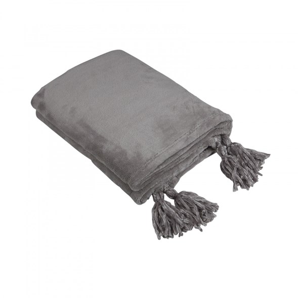 Härligt mysig och mjuk ljusgrå fleecepläd. Generösa tofsar med fransar i hörnen. Perfekt att svepa in sig på balkongen i trädgårdsmöbeln eller i soffan.