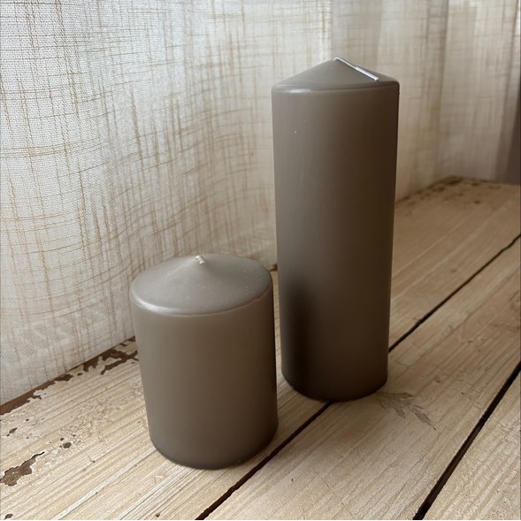 Matt blockljus i vacker linfärg av 100% RAL-certifierad paraffin.
