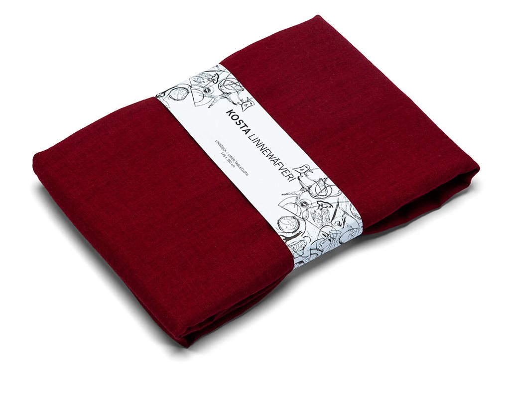 Kosta Linnewäfveris serie i vacker tvättad lin ger en mjuk och ombonad känsla. Denna vinröda bordsduk är tillverkad i tvättad 100% lin med fin kvalité.