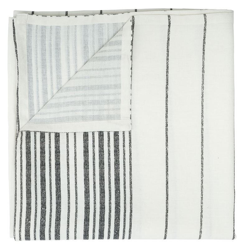 Klassisk duk i vacker lin- och bomullsblandning med svart rand på vit bottenfärg.