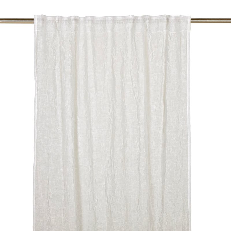 Snygg offwhitefärgad lättskött gardin som är naturligt skrynklig. Tillåter ljusinsläpp men är inte helt transparent. Stryk enkelt upp till önskad längd med Nolhaga Hems lättanvända fållband.