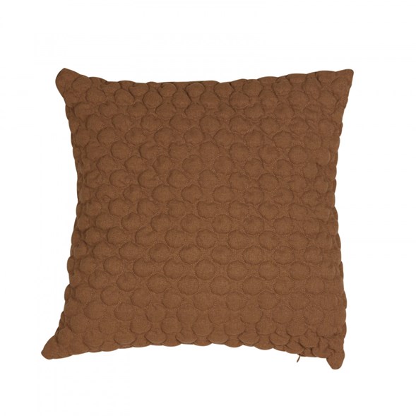 Snyggt lättplacerat kuddfodral i skön cognacsfärg. Fodralet har kul sydda bubblor på framsidan och slät baksida. Tyget har lite struktur och liv trots att det är enfärgat. Diskret, dolt blixtlås. Kombinera gärna med kuddar i kraftiga mönster med samma färgskala.