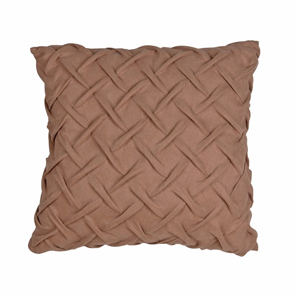 Elegant kuddfodral i mörkrosa med dragning åt brunt med sydda veck på framsida. Baksidan är slät. Rutmönstret upplevs därmed som upphöjt. Dolt blixtlås i sidan.