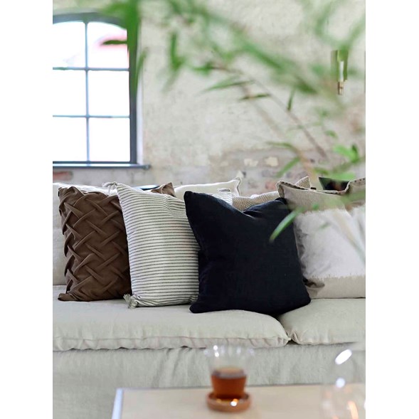 Dekorativt och lättplacerat kuddfodral i vackert linne. Kombinera gärna med flera olika färger av Linus eller låt den svarta färgen lugna ner mönstrade kuddfodral i samma färgskala.
