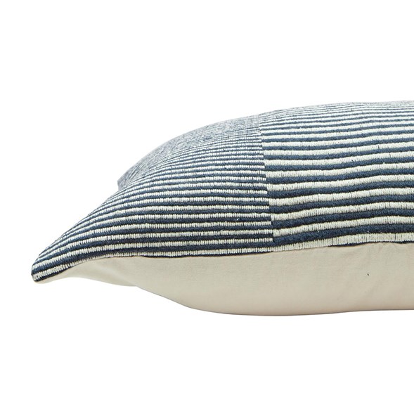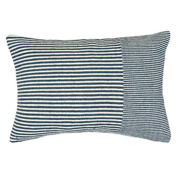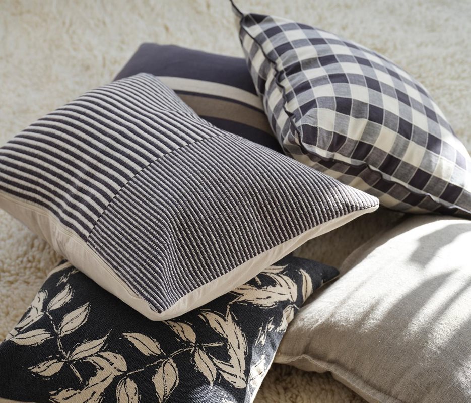 Tyra kuddfodral i kraftig bomullskvalitet och med garnfärgat randigt mönster i en snygg grå färg. Kuddfodralet har dragkedja i nederkant.