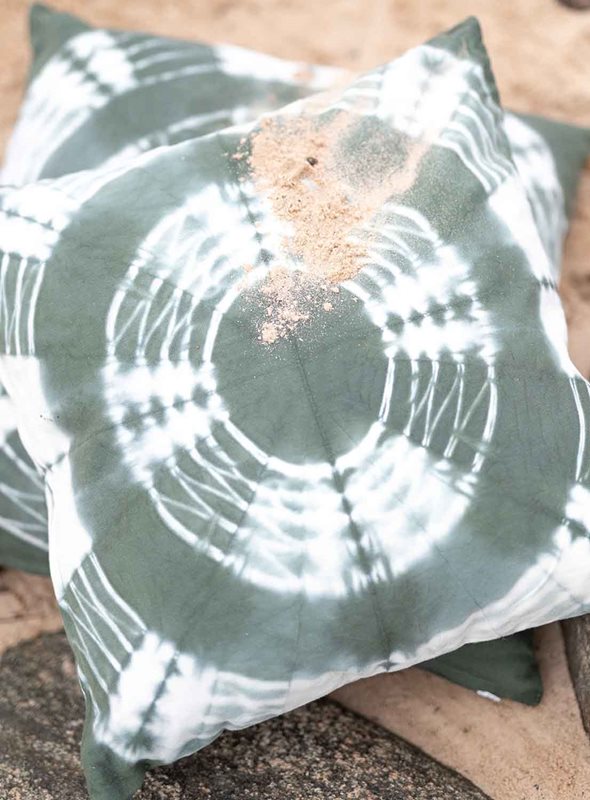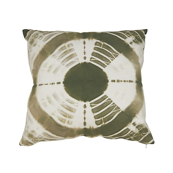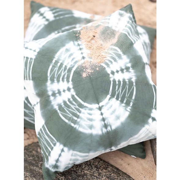 Vackert batikmönstrat kuddfodral i skön grön färg.