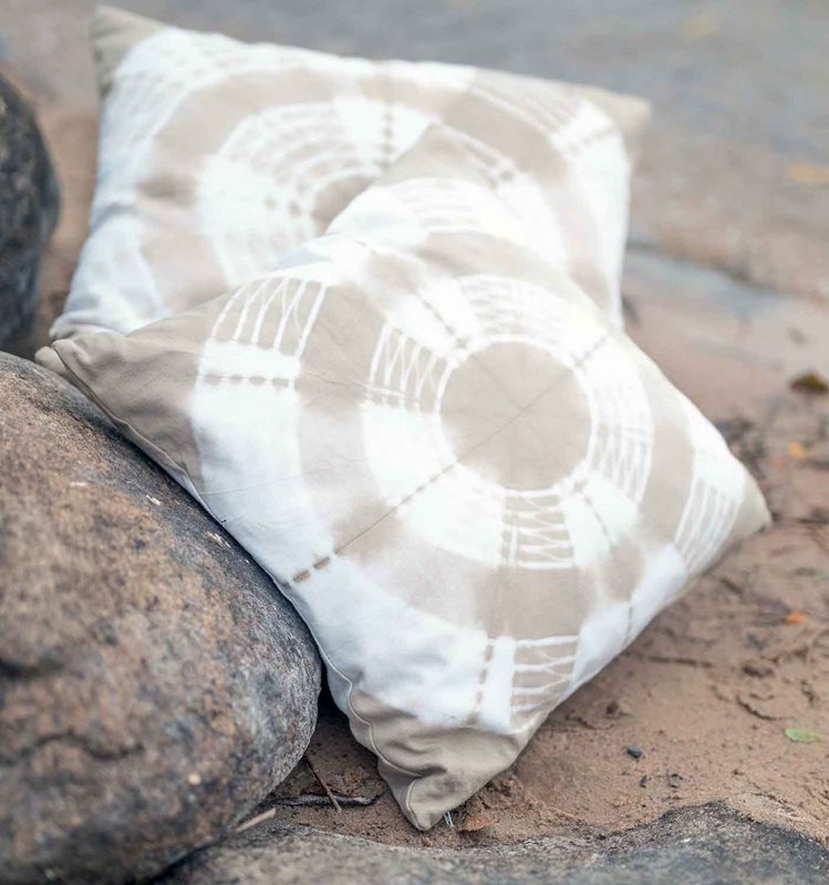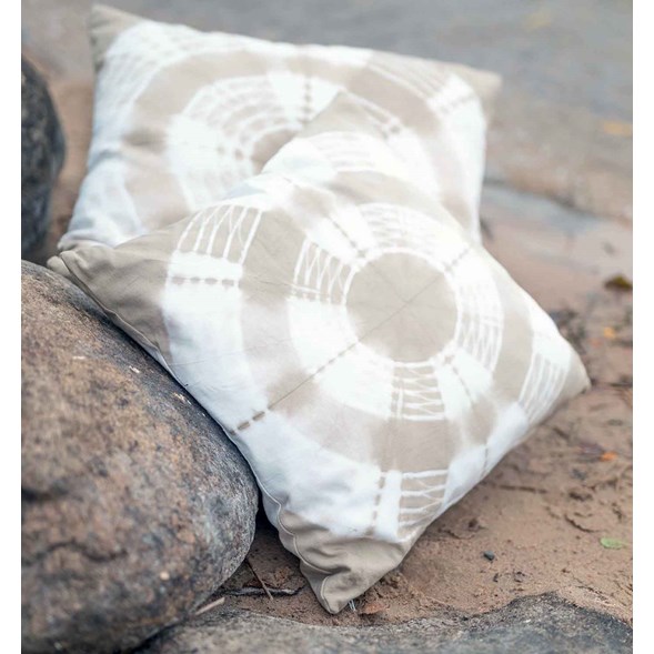Vackert batikmönstrat kuddfodral i vacker beige färg.