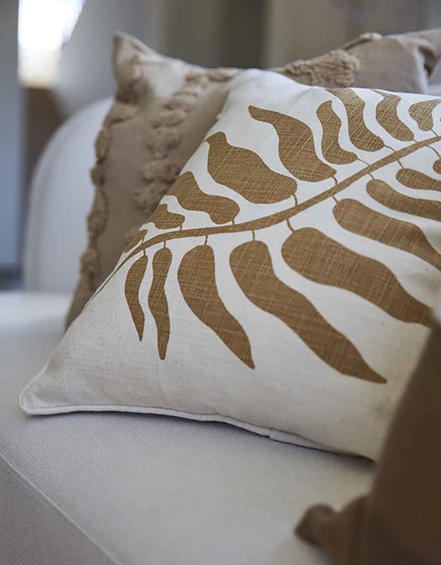 Kuddfodral i kraftigt bomullstyg med tvättad känsla. Kuddfodralet har ett tryckt mönster av ett vackert blad och dragkedja på baksidan.