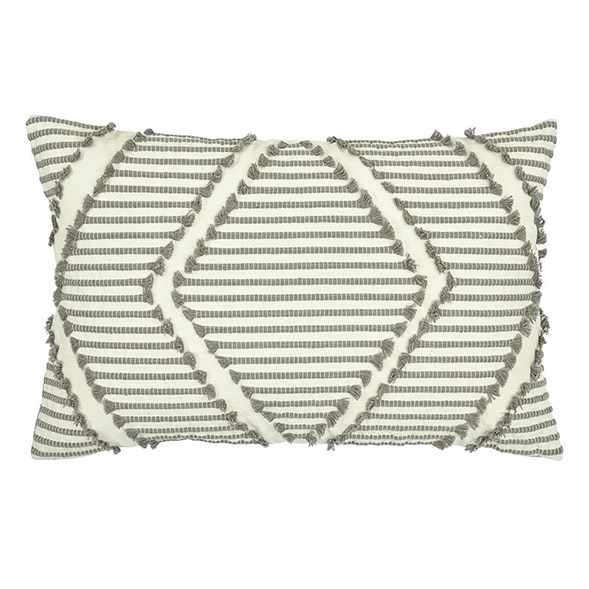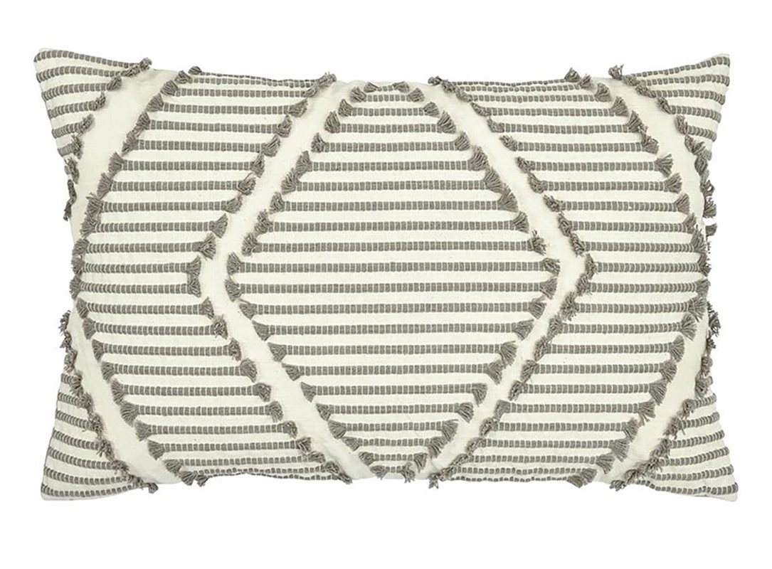 Elegant kuddfodral med modernt broderat mönster i en snygg beige färg på en offwhite botten. Kombinera gärna med kuddar i kraftig struktur.