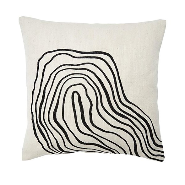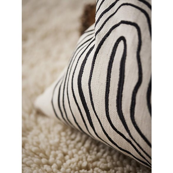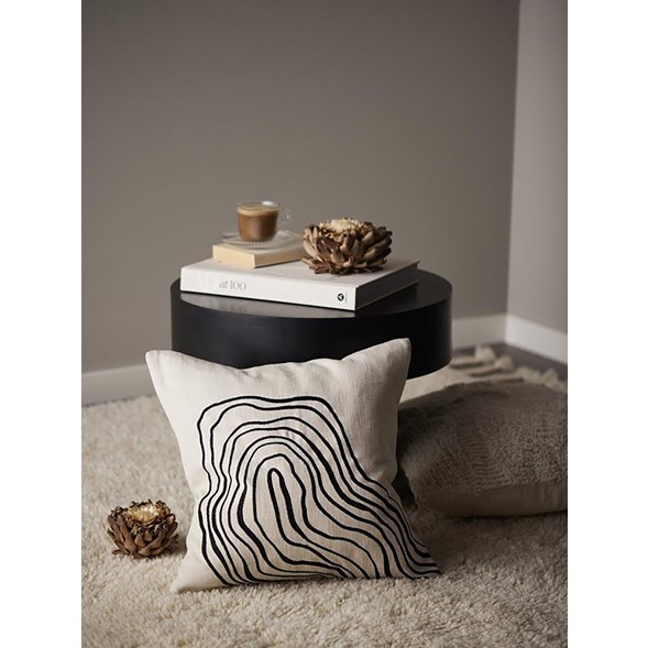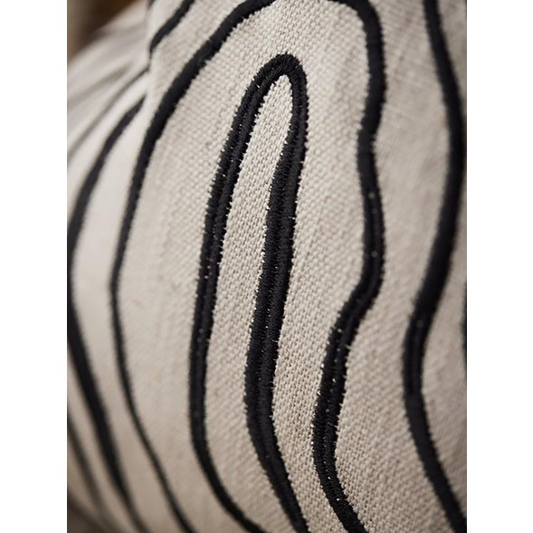 Kuddfodral med broderat mönster på kraftigt bomullstyg, med dragkedja i nederkant. Enfärgad baksida.