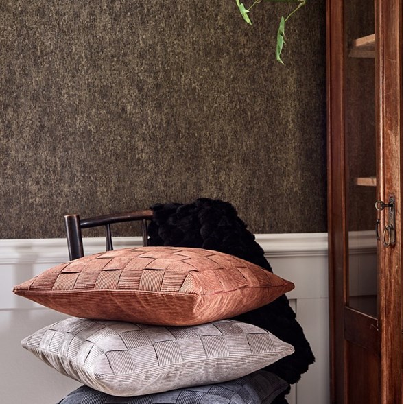 Stilrent cremefärgat kuddfodral i manchester med flätad effekt på framsidan och struktur på baksidan i samma kvalité och färg. Dold dragkejda nertill.