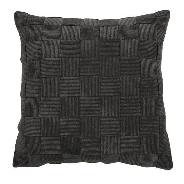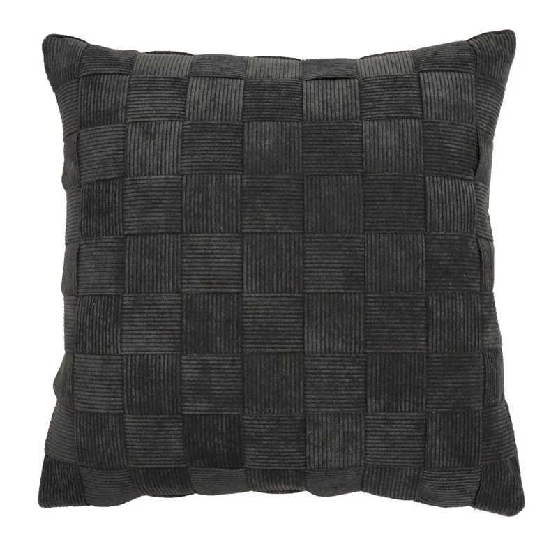 Stilrent mörkgrått kuddfodral i manchester med flätad effekt på framsidan och struktur på baksidan i samma kvalité och färg. Dold dragkejda nertill.