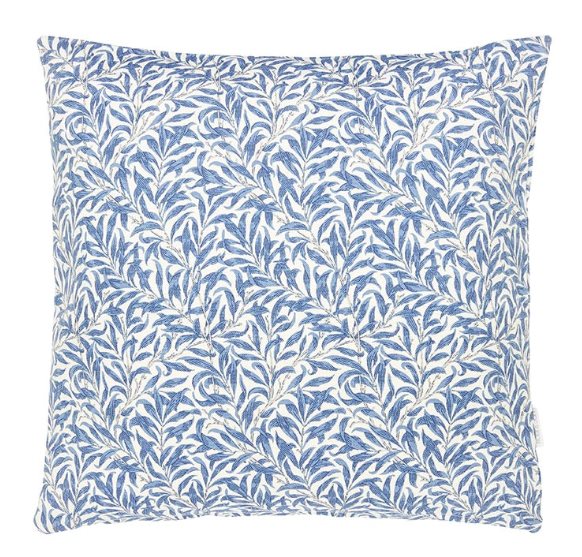 Snyggt kuddfodral med tryckt bladmönster i blått från Boel & Jan. Kombinera gärna med enfärgade kuddar i samma färgskala.